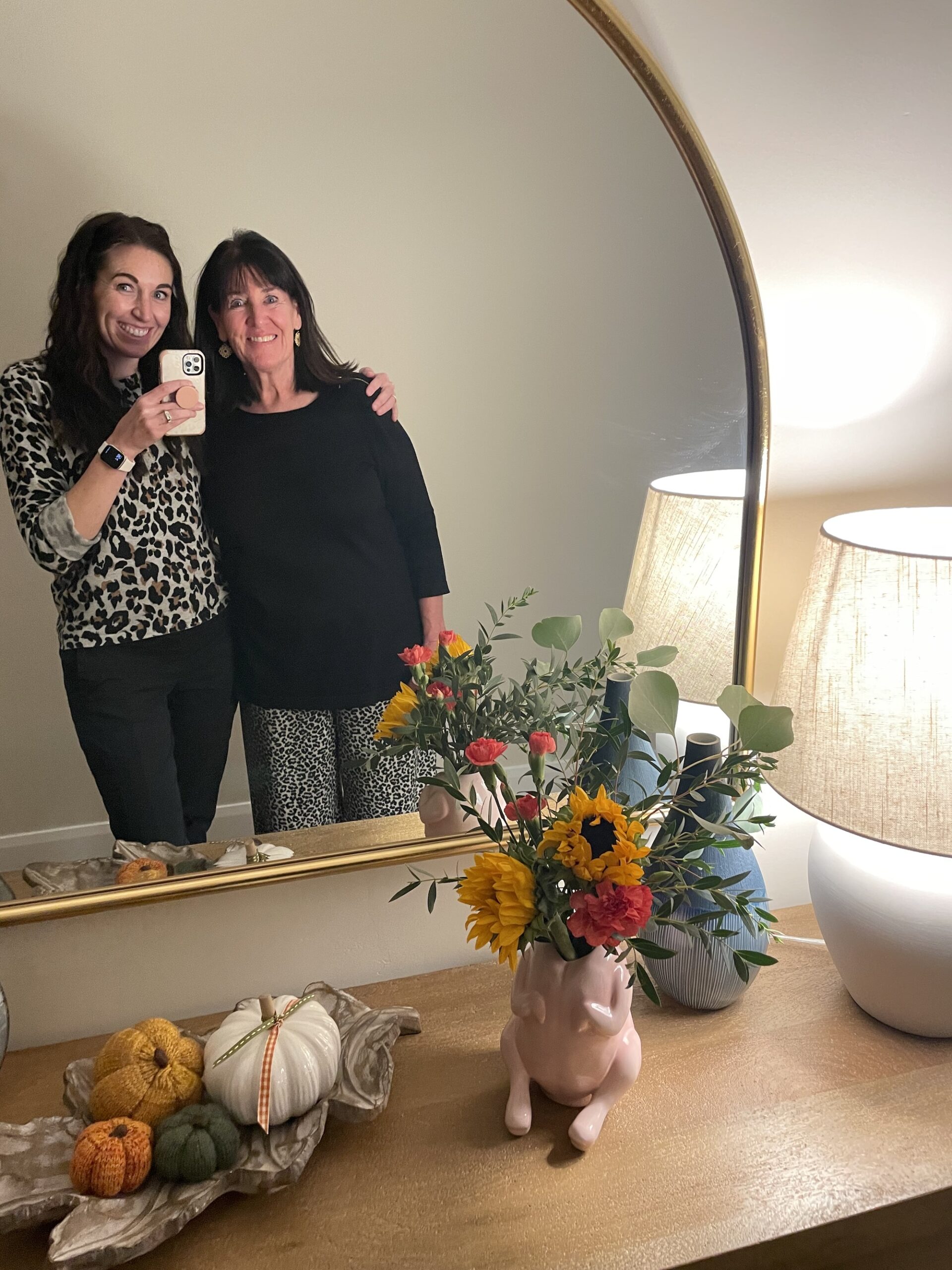 Is this a picture of two amazing ladies, or a picture of a turkey vase? You decide.