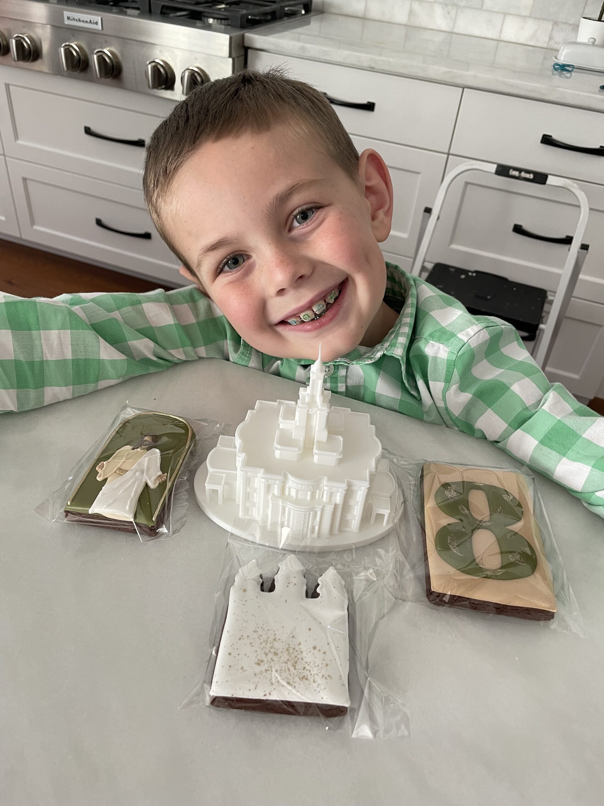 Landon will be turning 8 next year, so he got to attend the baptism preview. Check out the swag he got.