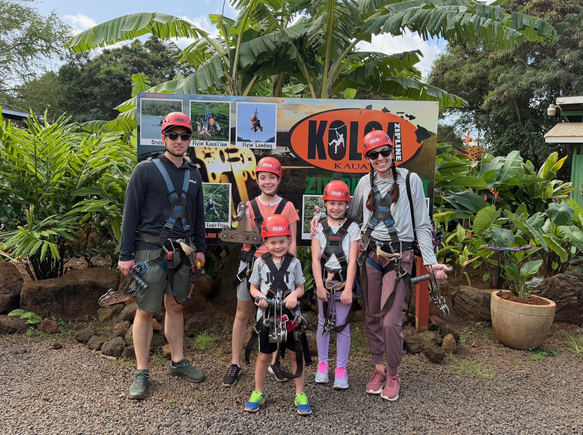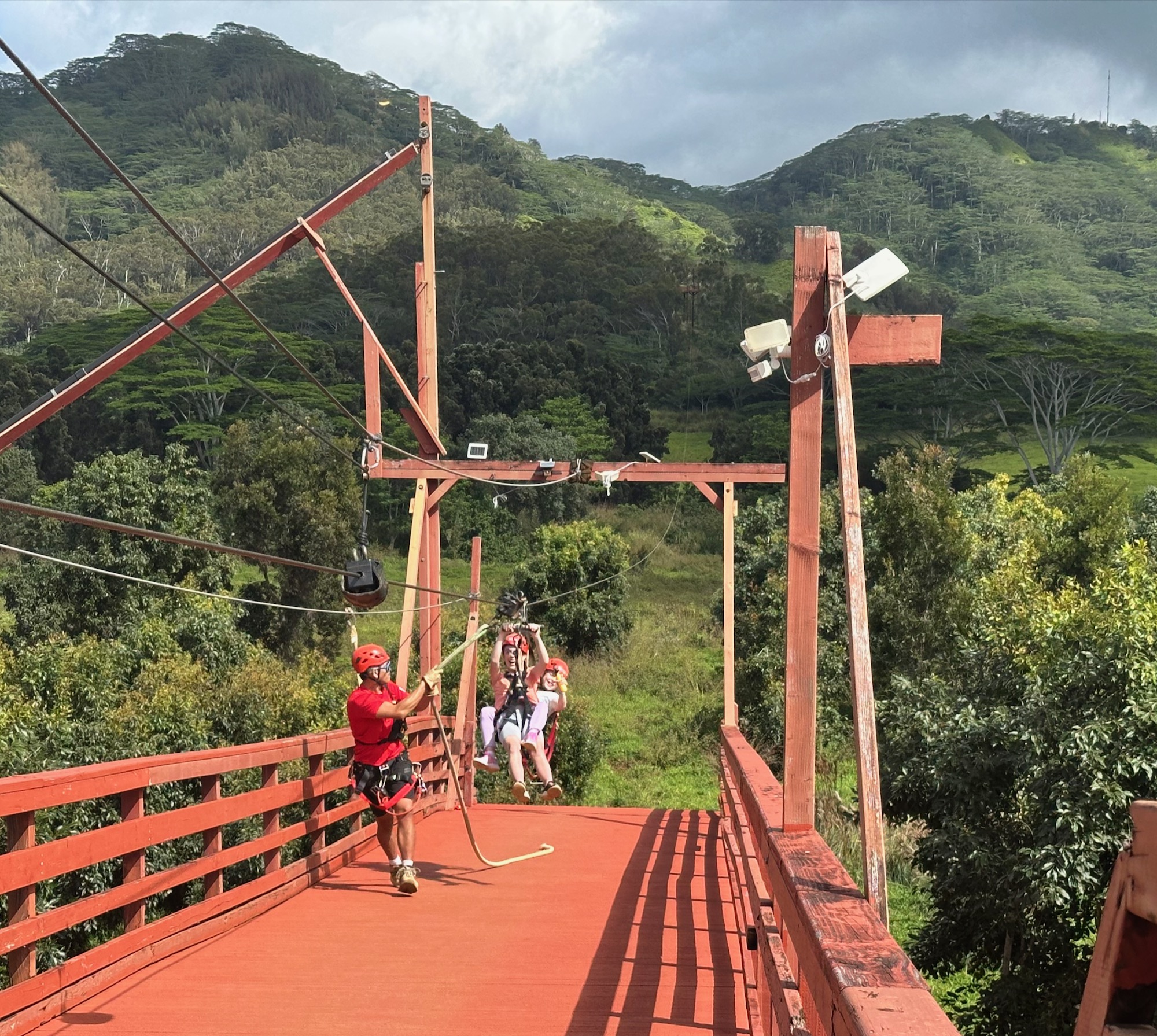 Friday. After hearing about it from her cousins, Ashley really wanted to try out a zipline. So we lucked out and found an opening at the famous Koloa Zipline. I’m sure Zoey would have loved to come, but she got to hang out with Grandma and Grandpa and she’ll get a chance another year.
