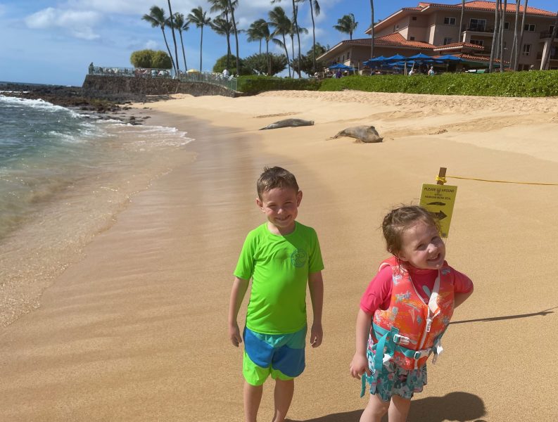 Afterwards, we met up with Mom, Dad, and Zoey at Poipu beach. We saw some Monk Seals.