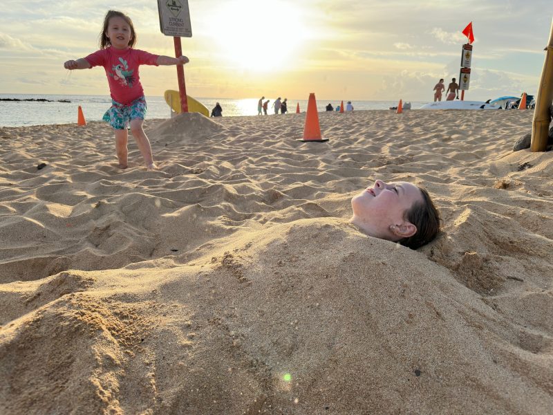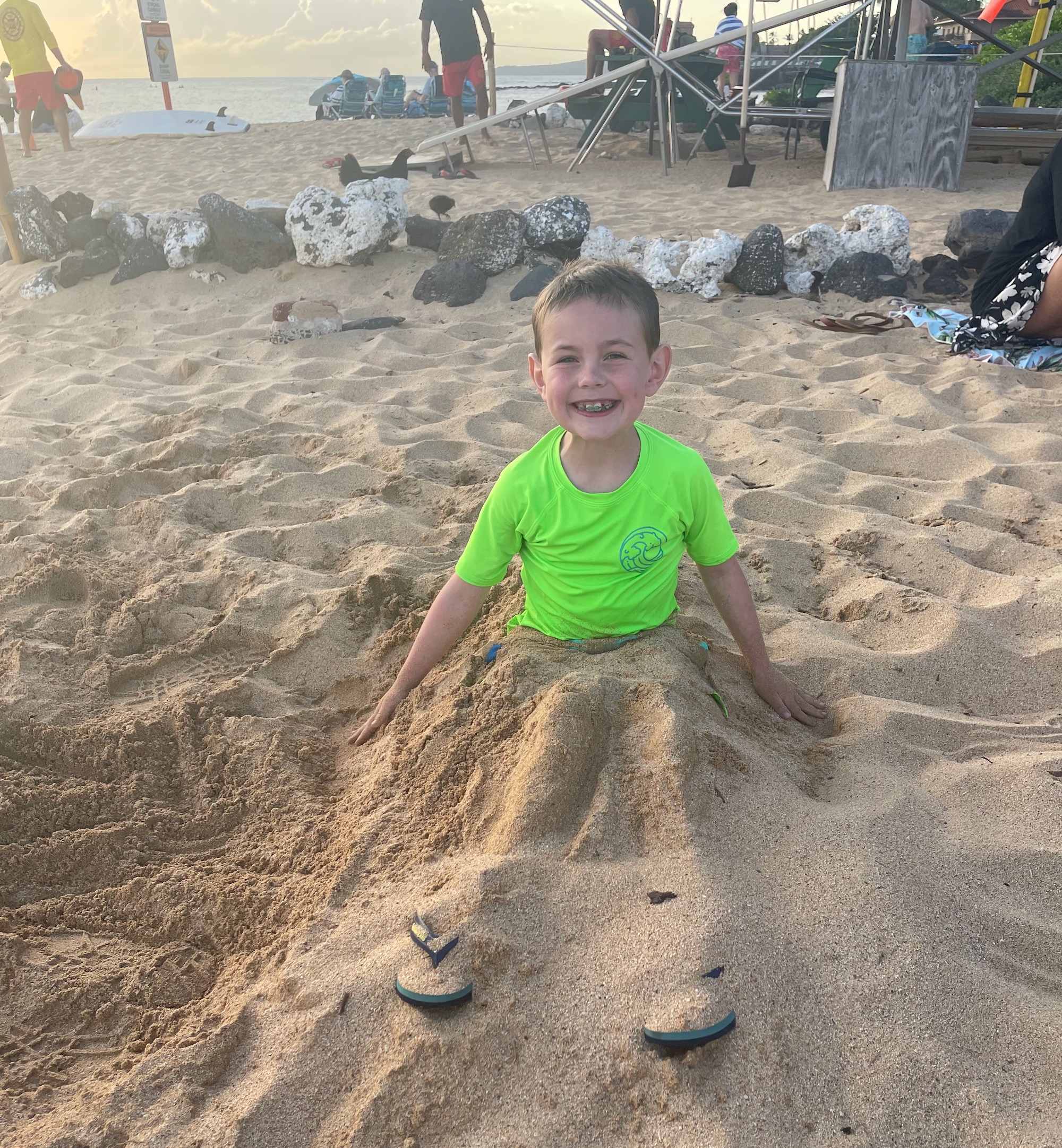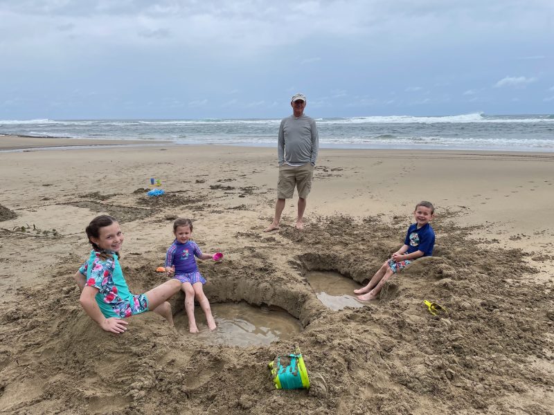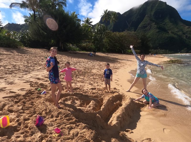 Back at Ke’e, these guys had been busy with all kinds of beach fun, making baths, and little villages, and hanging out with Grandma and Grandpa.