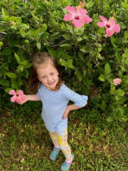 Saturday. Zoey found some beautiful pink hibiscus flowers. So pretty!