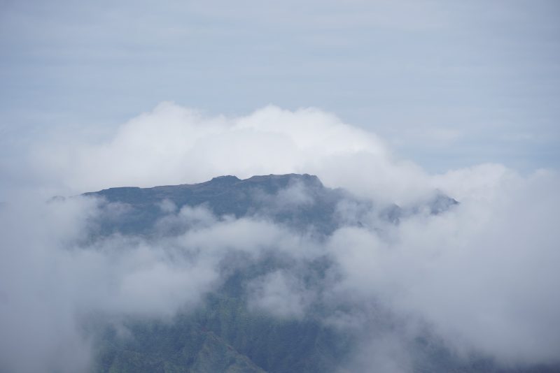 Mount Waiʻaleʻale peaking out of the clouds for a brief moment.