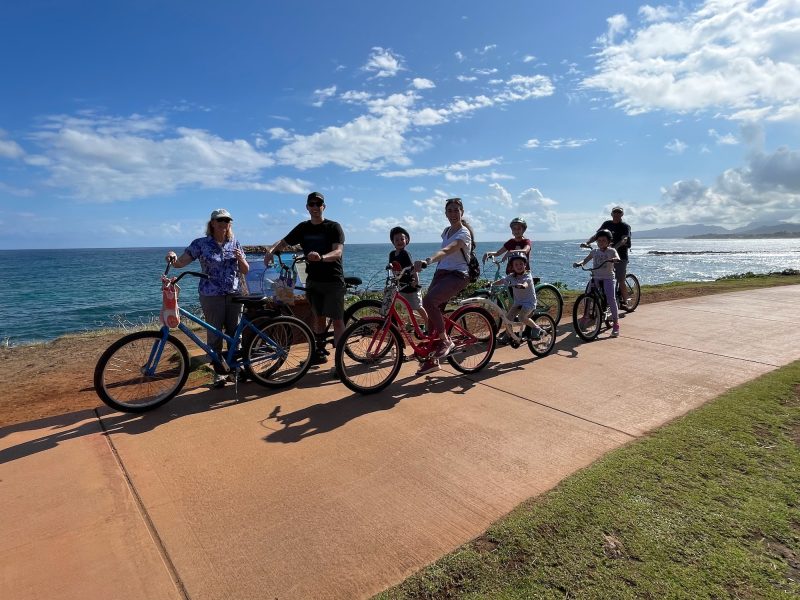 Then we rented bikes at Kapa’a and rode the bike path. Not only was it beautiful scenery along the coast, Landon and Zoey loved their tagalong bikes.