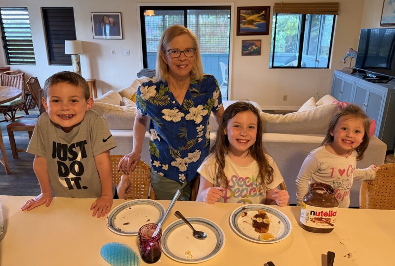 Monday. Happy faces after Nutella and fruit covered Hawaiian pancrepes from Grandma Julie.