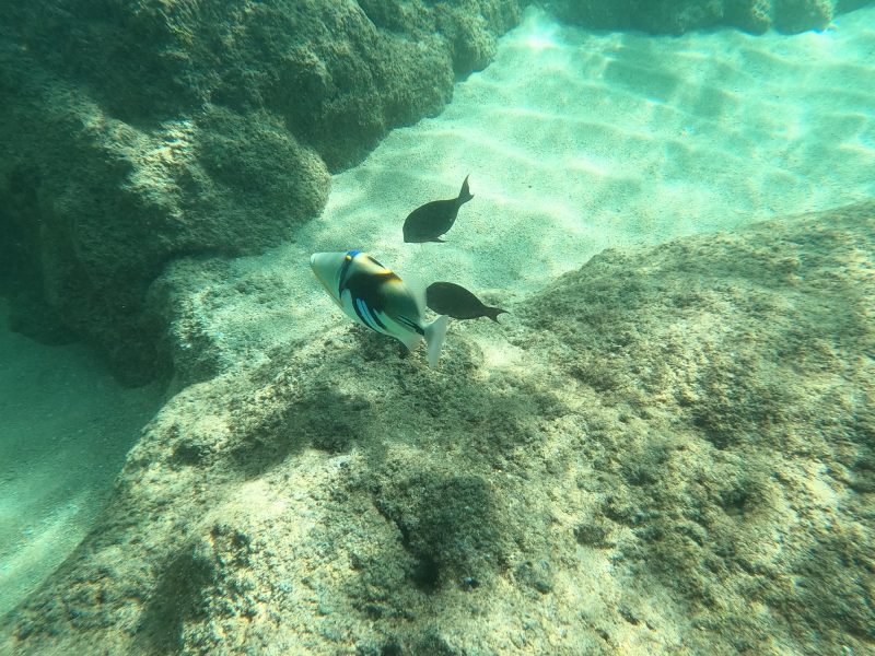 We lucked out with some very calm waters and sunshine, enabling us to get out and snorkel. We saw lots of fun fish with their glowing fluorescent stripes.