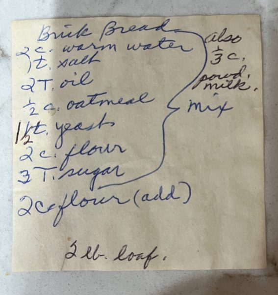 Nancy loved to sew and mend. Literally thousands of hours were spent creating many new dresses, quilts, suits, etc., and in repairing many worn and torn items. She always asked visiting family members if they brought anything that needed mending. If they didn’t, she would ask, “Why not?” Neatly folded at her sewing machine are three projects she was working on. This was her way of tangibly showing her love for her family in her 90th year.