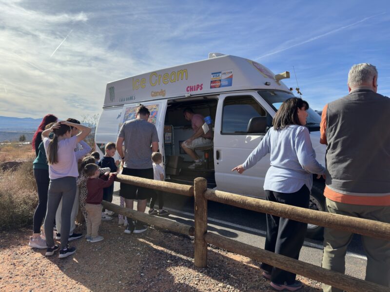 We were just getting buckled up to leave when we heard the sound of the ice cream truck coming up the hill. How could we not?