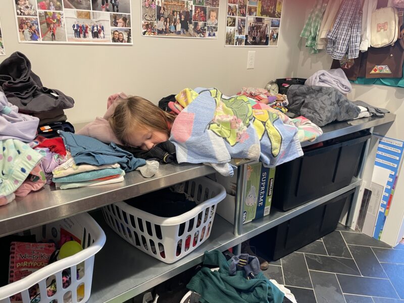 Kathryn kept the house running like a boss. Zoey’s favorite place is the warm laundry pile.